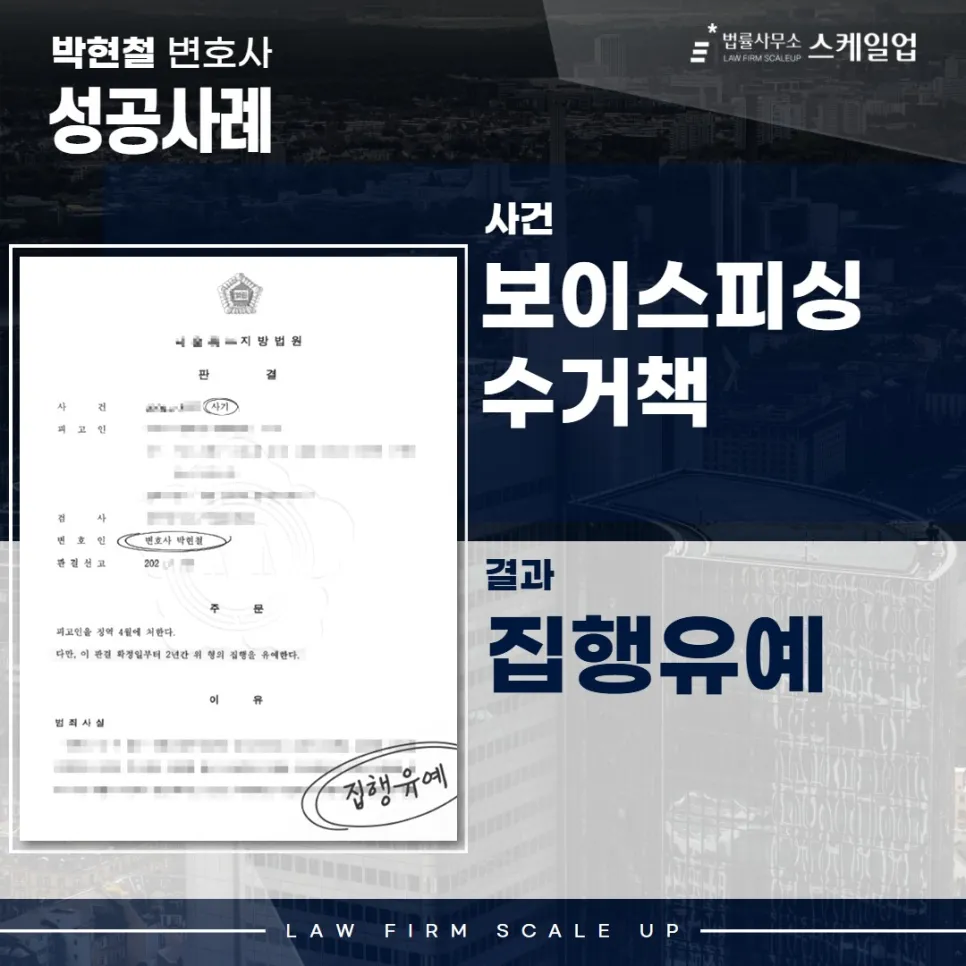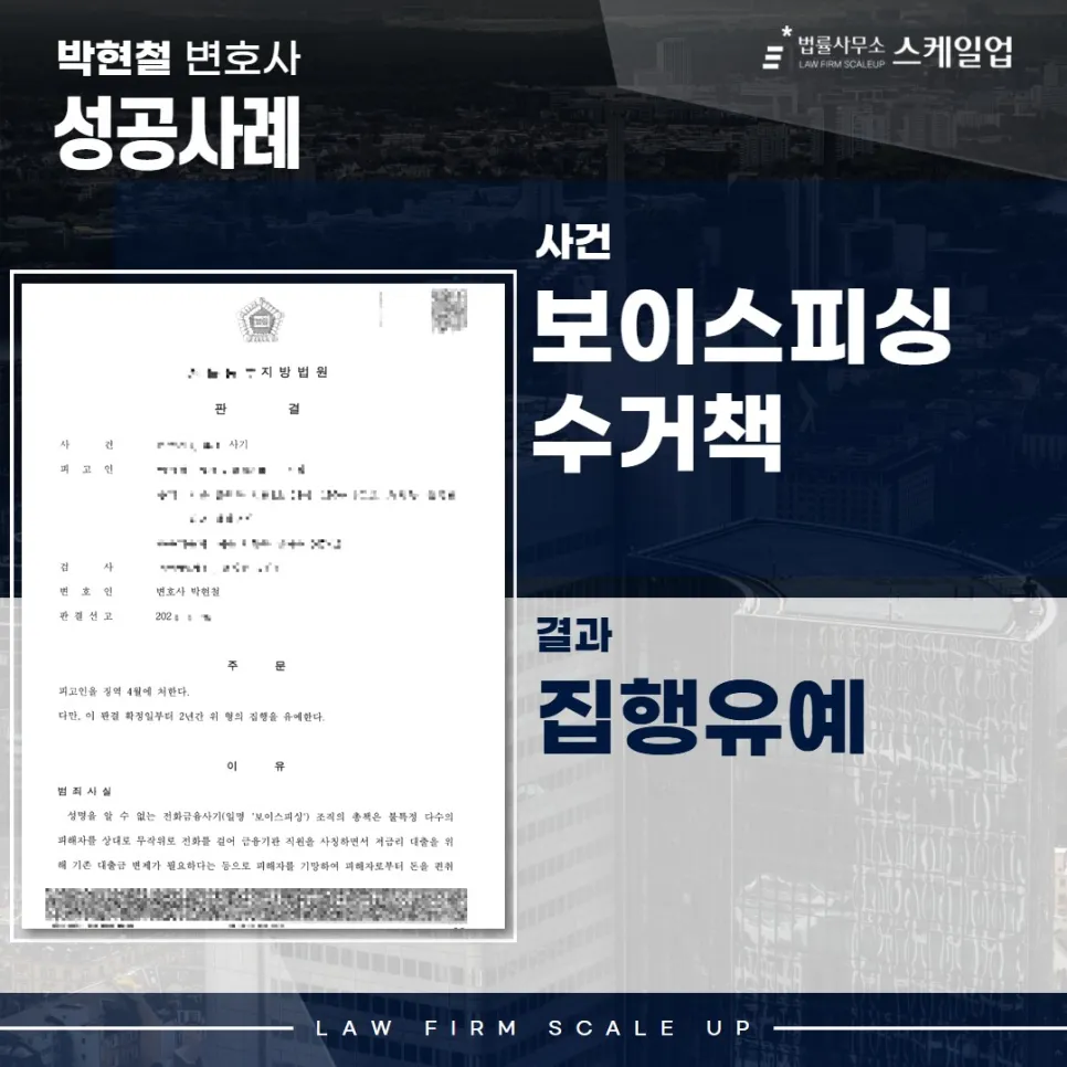송파형사전문변호사 보이스피싱 형량, 보이스피싱 ‘집행유예’ 받은 사례