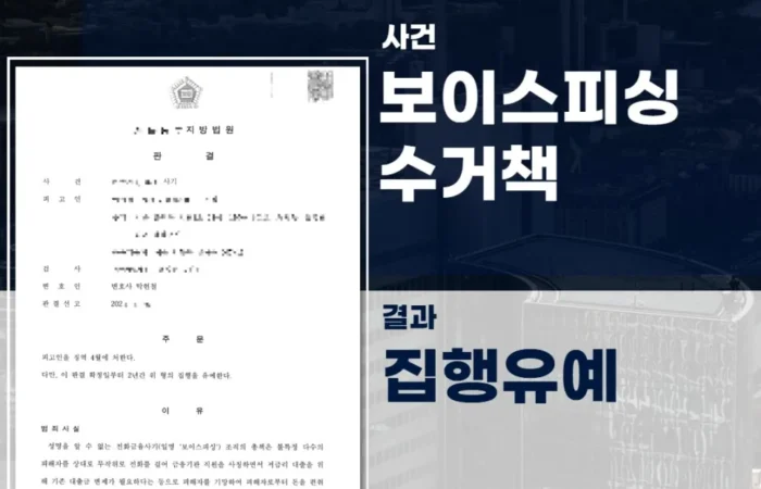 Author lawscaleup Published on: 2026-03-09 사기전문변호사, 보이스피싱 수거책 ‘집행유예’ 받은 사례 보이스피싱 수거책 → 결과 : ‘집행유예’로 선처 *의뢰인의 개인정보보호를 위해 각색되었음을 알려드립니다. << 사건개요 >> 의뢰인 A씨는